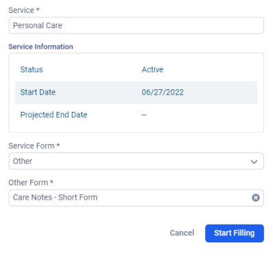 Care Notes - Short Form