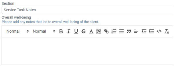 and claim number fields) - Client Well Being. Within the Client Well Being section, this form offers a