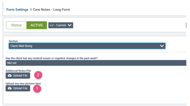 feature for uploading any additional notes in an electronic format (1), as well as a picture (2).