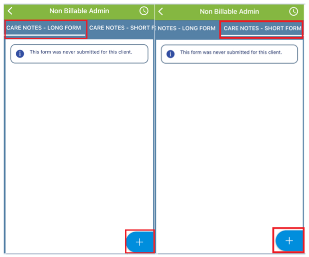 NOTES – LONG FORM, or CARE NOTES – SHORT FORM. The forms can be brought up by clicking the