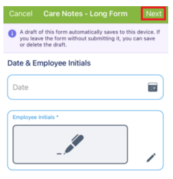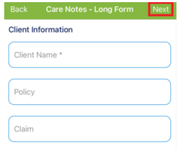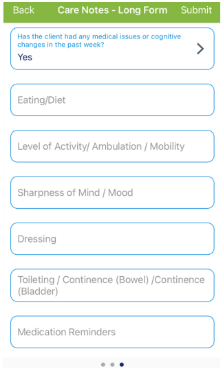 Care notes- Long and Short Form Mobile App View
