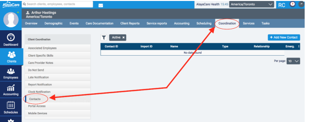 In the Client Contacts, you can filter by Status, or search by Name, by clicking on