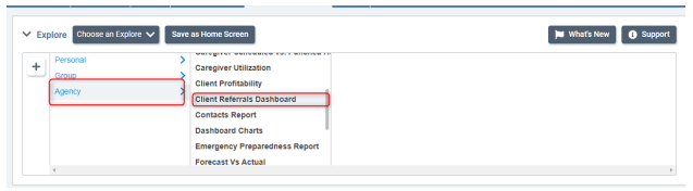 HWCG has the report built in under Agency > Client Referrals Dashboard.