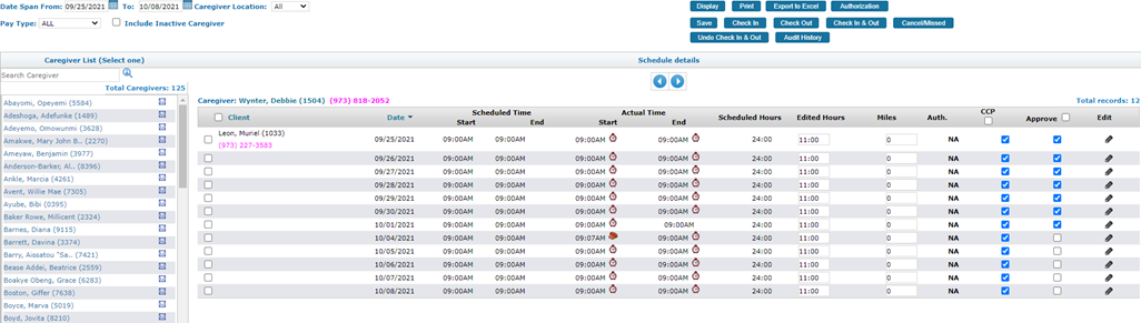 - Select each Caregiver to review their timesheet