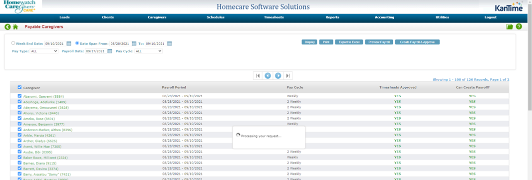 - If Can Create Payroll? is ‘No’ then you will need to review the caregiver’s schedule and adjust