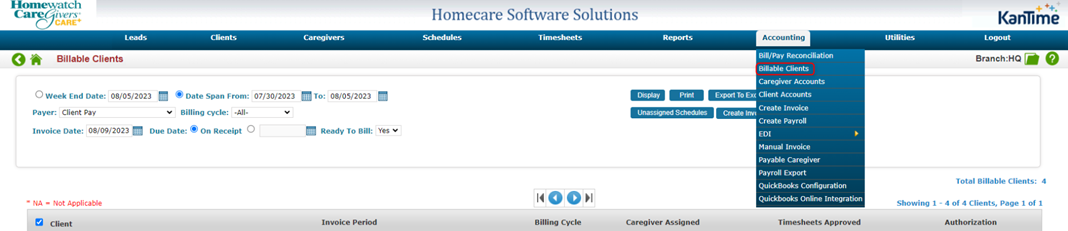 - Click Billable Clients