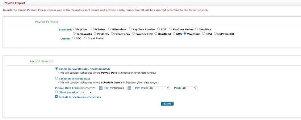 - Select Payroll Export