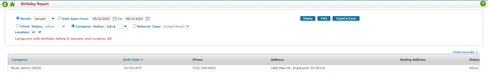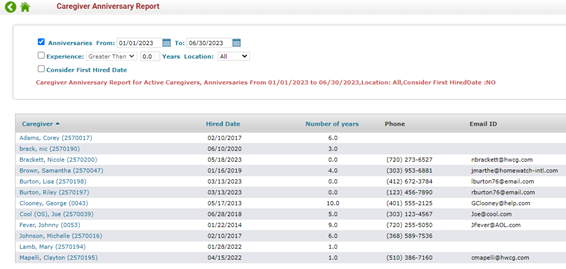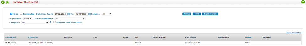This report allows you to quickly identify the number of caregivers hired or terminated for a specific timeframe.