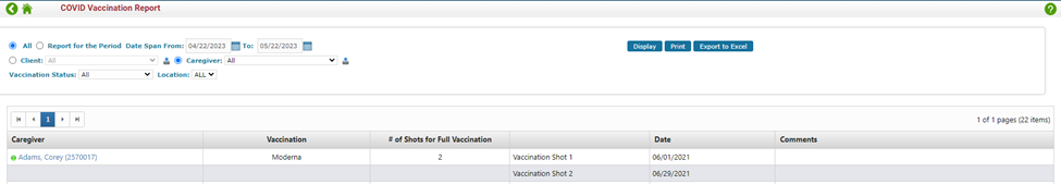 This report provides the type, number of doses, and date of each COVID vaccination shot.
