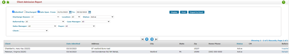 This report illustrates the number of new and discharged clients for a desired timeframe.
