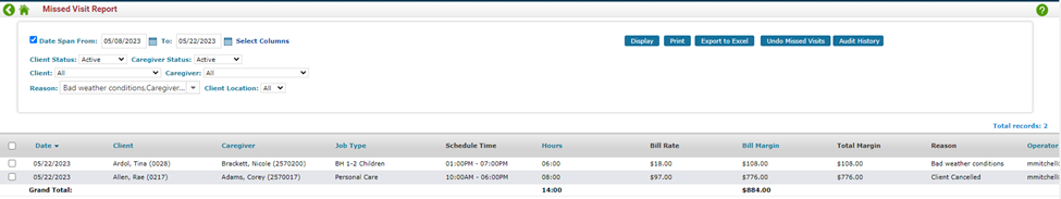 This report allows you to see the reason behind canceled shifts. Did the client cancel? Did the caregiver cancel and the client didn’t want a replacement? Did the caregiver cancel and you couldn’t find a replacement? Was the shift canceled due to bad weather?