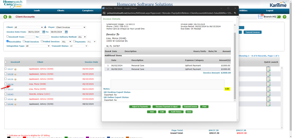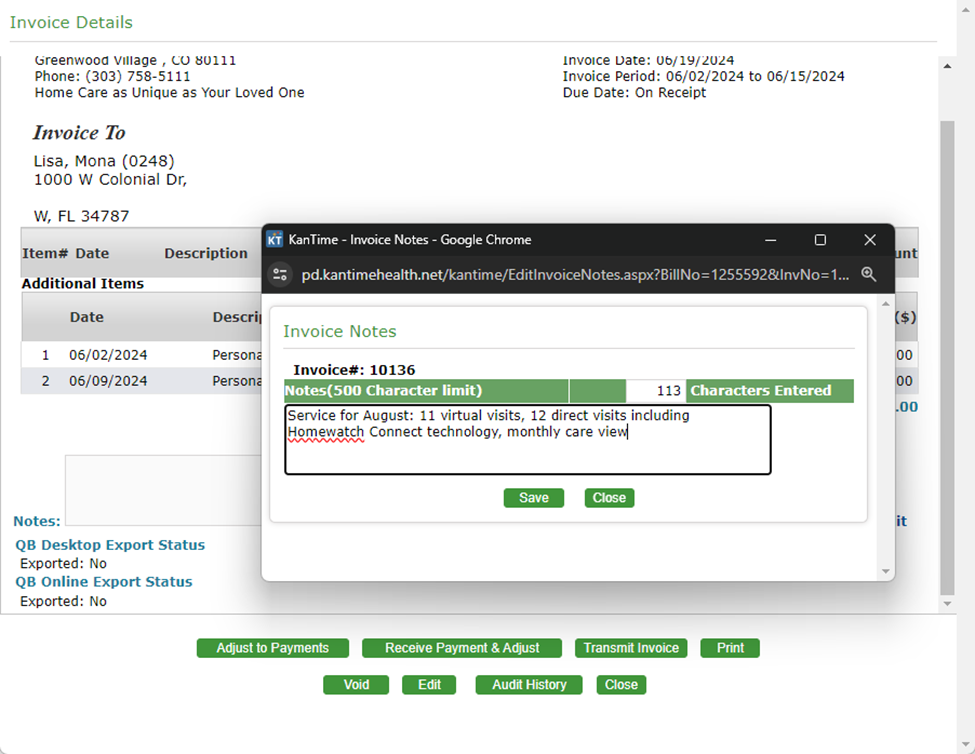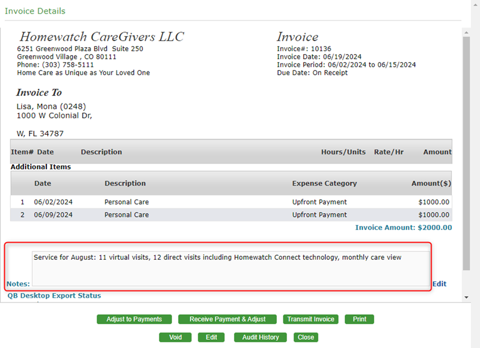 Invoice Notes - Option 1: Utilizing Comment/Notes section in invoices: